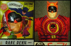 Check out this Uber cool Doctor Doom costume from Ben Cooper. Yes, the mask may seem a bit flimsy, but that was part of the charm. Ben Cooper costumes were mass manufactured and marketed, filling Woolworth, Ben Franklin and other now defunct department store chain aisles.
