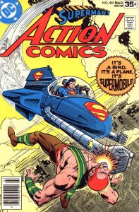 Debuting in Action Comics (1938) 481, the Supermobile was launched. The rocket is constructed of an invulnerable metal called, yes, Supermanium. Issue 481’s plot saw Superman powerless after exposure to red sun radiation. To battle Amazo, Superman crafted the Supermobile.